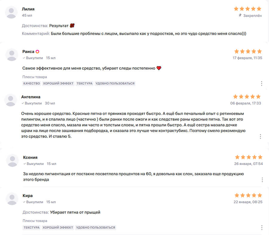 - ускорению исчезновению следов - красных пятен после прыщей